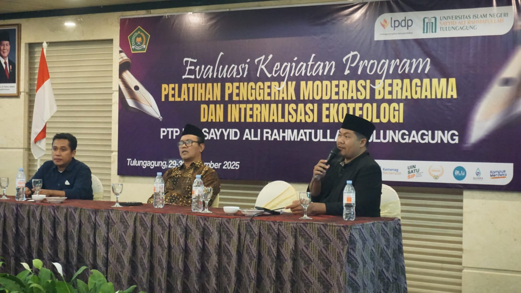 Tulungagung — Ancaman radikalisme terhadap anak-anak dan kelompok rentan di era digital menjadi perhatian serius para akademisi dan pemangku kepentingan keagamaan. Hal tersebut disampaikan oleh Dr. M. Kholid Thohiri saat menjadi narasumber dalam Acara Evaluasi Program Kegiatan Pelatihan Moderasi Beragama dan Ekoteologi Kementerian Agama Republik Indonesia, yang diselenggarakan oleh UIN Sayyid Ali Rahmatullah (UIN SATU) Tulungagung di Crown Victoria Hotel Tulungagung, pada Senin–Selasa, 29–30 Desember 2025.